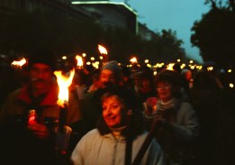 Hundreds attended and a meeting chaired by one of the law professors. At the meeting MEFESZ is officially re-established, with 20 demand points – ten pertaining to re-establishing MEFESZ but ten others having direct political demands – e.g. free elections, departure of Soviet troops, etc. Within days, the student bodies of Pécs, Miskolc, and Sopron will follow.